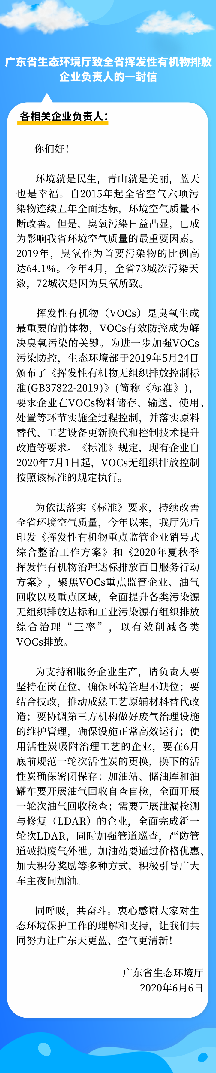广东省生态环境厅致全省挥发性有机物排放企业负责人的一封信